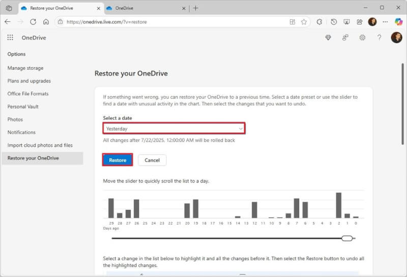 5. Hoàn tác mọi sai sót với công cụ khôi phục OneDrive