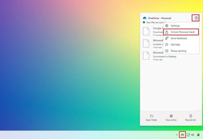 Bạn có thể mở khóa Vault bằng cách nhấp vào biểu tượng OneDrive → Settings → Unlock Personal Vault, sau đó xác thực qua tài khoản Microsoft. Vault sẽ tự động khóa sau 20 phút không hoạt động, và bạn có thể tùy chỉnh thời gian này trong phần cài đặt.