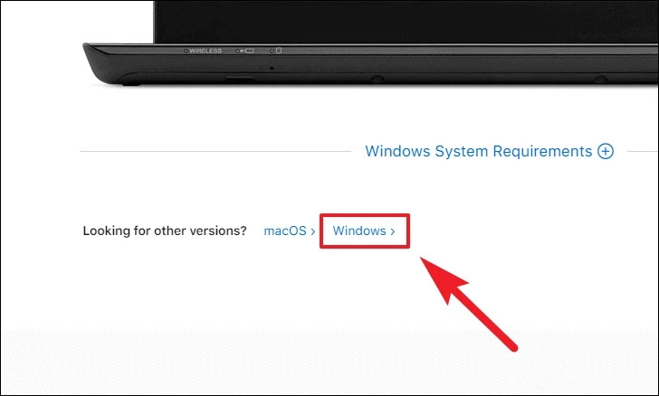 Bước 1: Truy cập apple.com/itunes → chọn mục Windows System Requirements.
