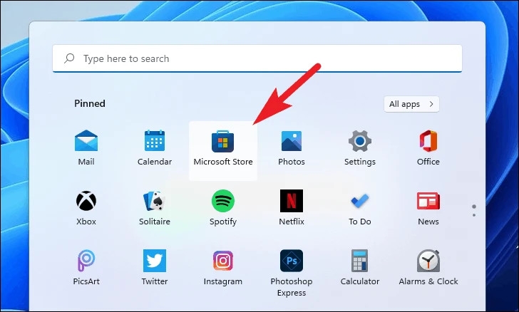 Bước 1: Mở Microsoft Store từ menu Start.