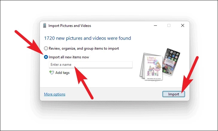 Windows sẽ tự động tạo một thư mục chứa toàn bộ dữ liệu đã nhập. Bạn cũng có thể chọn xóa ảnh khỏi iPhone sau khi sao lưu để tiết kiệm dung lượng.