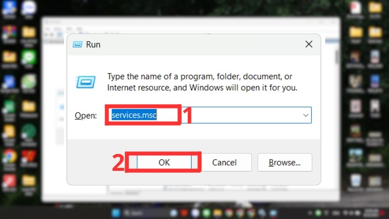 Bước 1: Nhấn Windows + R → nhập services.msc