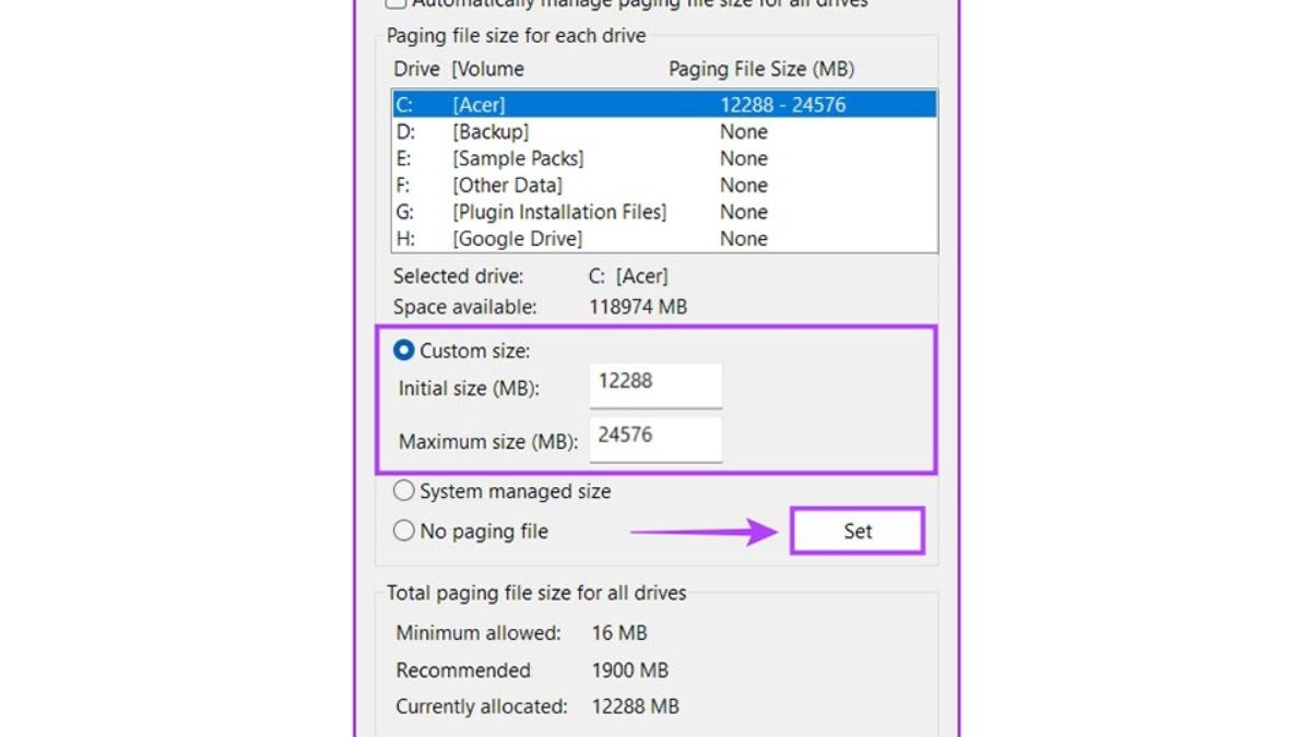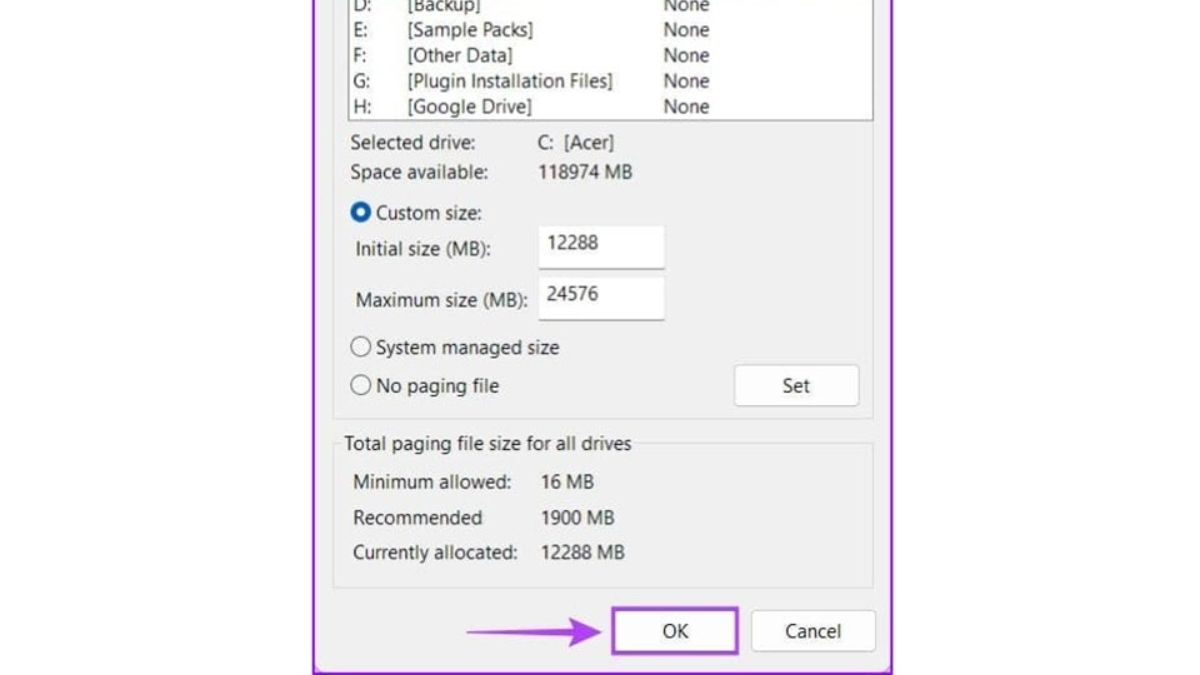 Việc set RAM ảo không phải cứ “càng nhiều càng tốt”. Đặt quá ít sẽ không hiệu quả, nhưng đặt quá nhiều sẽ lãng phí dung lượng ổ cứng SSD quý giá.