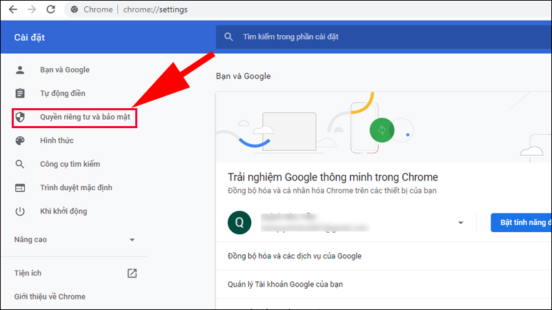 Bước 2: Tại thanh menu bên trái, chọn mục Quyền riêng tư và bảo mật (Privacy and security).