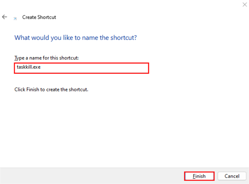 Bước 4: Trong ô Type a name for this shortcut, đặt tên tùy ý, ví dụ: Force Close Apps, rồi nhấn Finish.