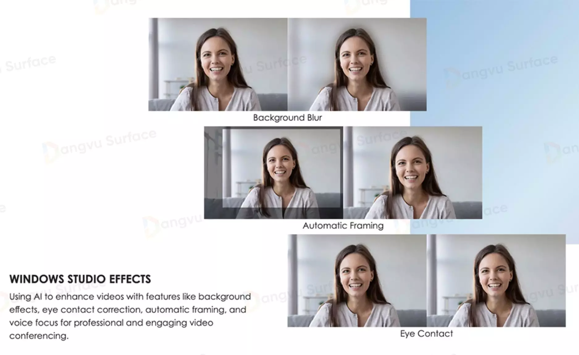 Hệ thống Camera trước/sau được nâng cấp đáng kể, kết hợp cùng Windows Studio Effects, giúp gương mặt bạn luôn sáng rõ, tự động căn giữa khung hình khi Livestream mà không cần Webcam rời.