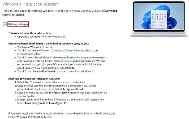 Cách 3: Cập nhật bằng công cụ Windows 11 Installation Assistant