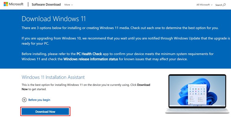 Bước 2: Tại mục Windows 11 Installation Assistant, nhấn Download Now.