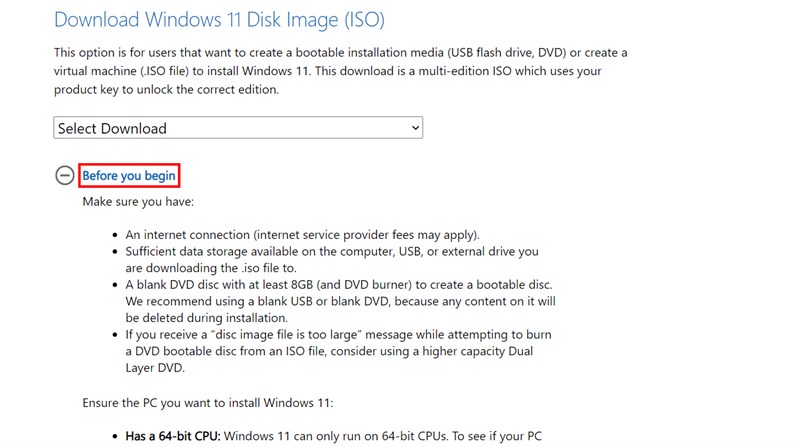 Bước 2: Cuộn xuống phần Download Windows 11 Disk Image (ISO).