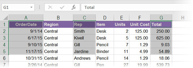 để chọn toàn bộ hàng 3 hoặc bạn có thể gõ A1:A5,C1:C5,G1:G5 rồi nhấnEnter