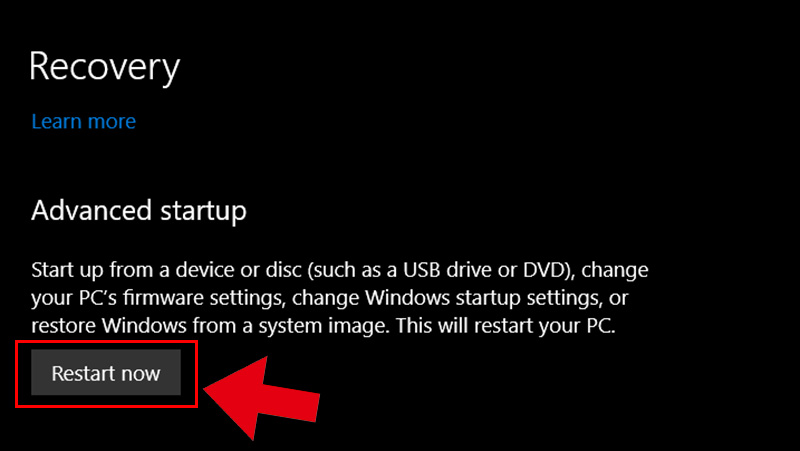 Bước 1: Nhấn tổ hợp phím Windows + S > Gõ “Change advanced startup options” > Nhấn Enter.