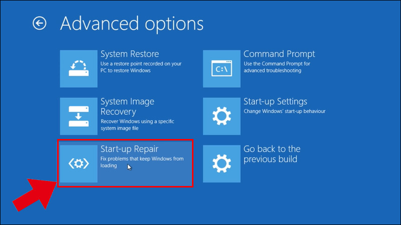 Bước 4: Chọn Startup Repair và chờ đợi hệ thống tự quét lỗi.