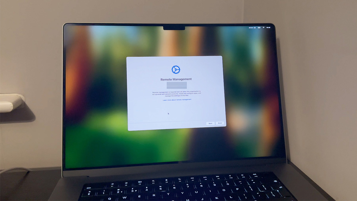 Nếu trong quá trình thiết lập, màn hình hiện thông báo Remote Management (Quản lý từ xa) và yêu cầu đăng nhập tài khoản công ty thì máy đó có MDM.