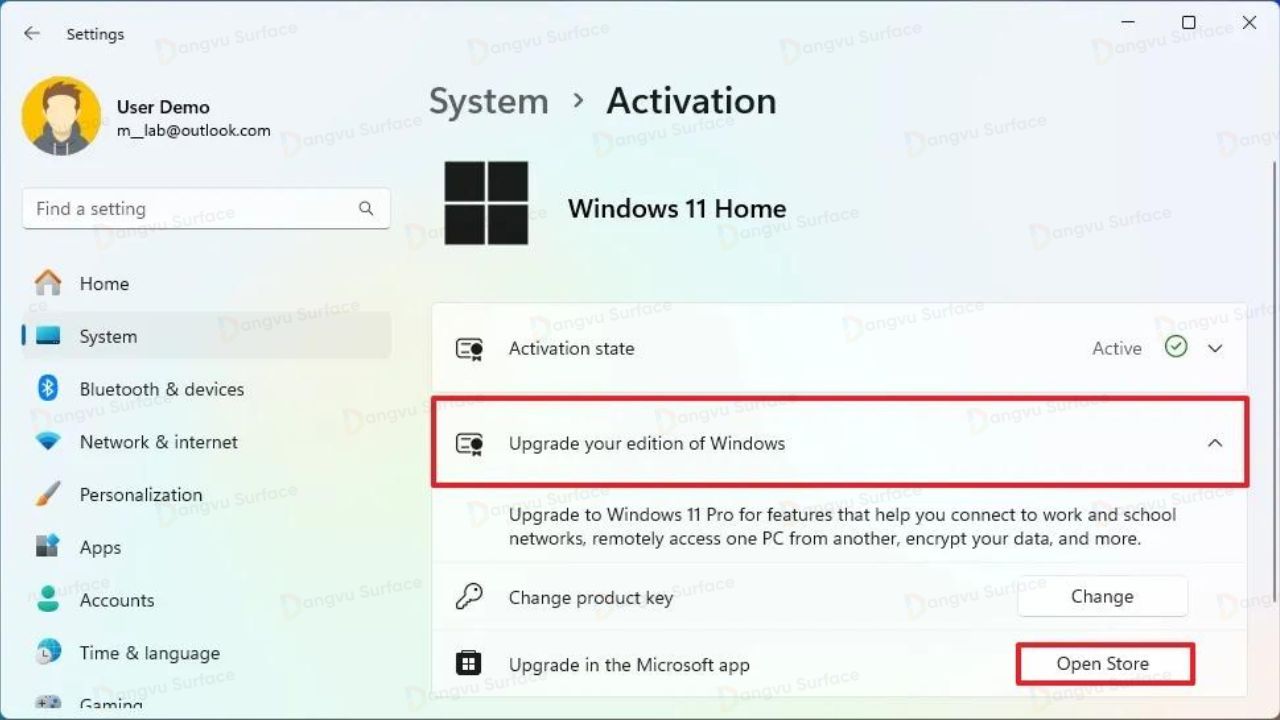 Bước 2: Chọn Upgrade your edition of Windows → Open Store.