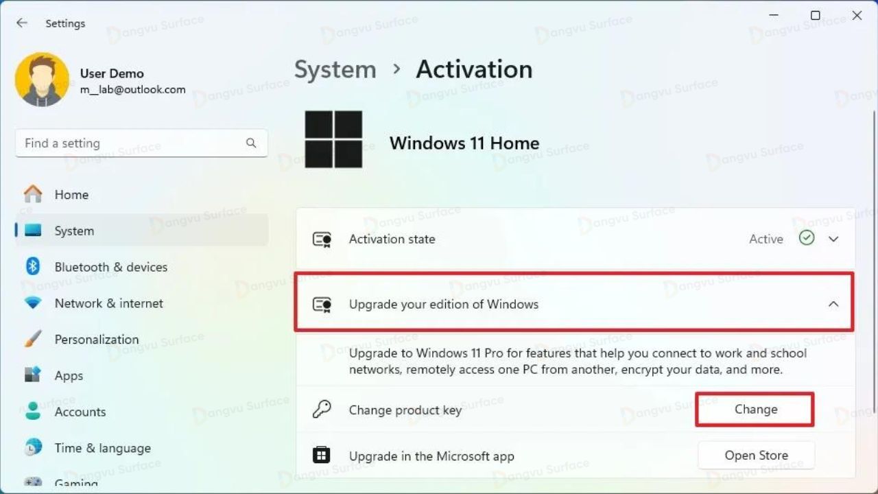 Cách 1: Nâng cấp bằng mã khóa sản phẩm (Product Key)