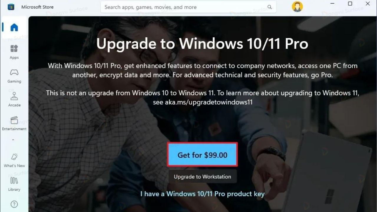 Bước 3: Cửa sổ Microsoft Store sẽ mở ra với tùy chọn Upgrade to Windows 11 Pro.